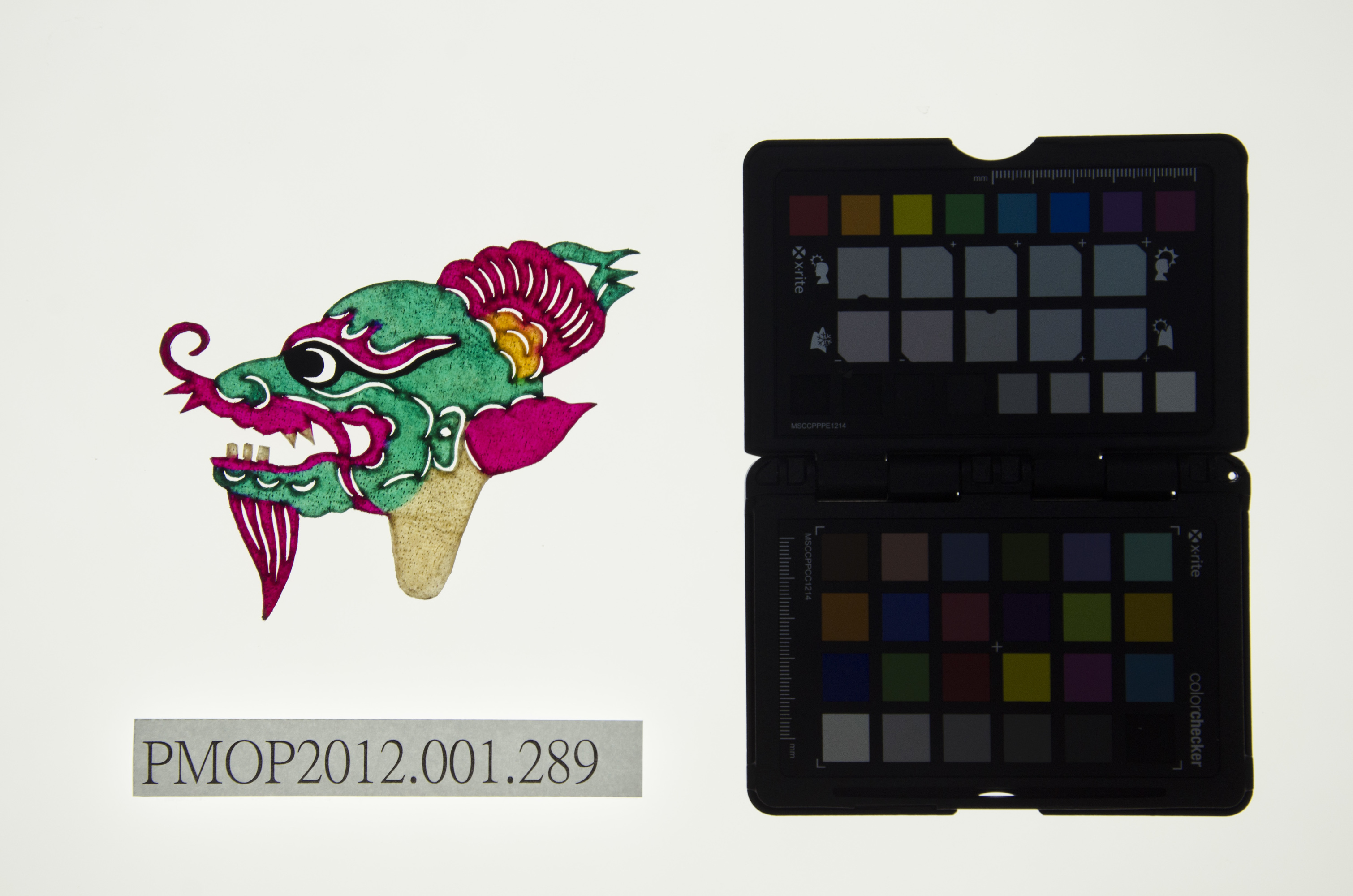 角色說明: 封神榜中西海龍王敖順 技法說明: 側面五分相陰刻,耳鬢有龍鱗。 詮釋者-東華皮影劇團 張榑國 藝師