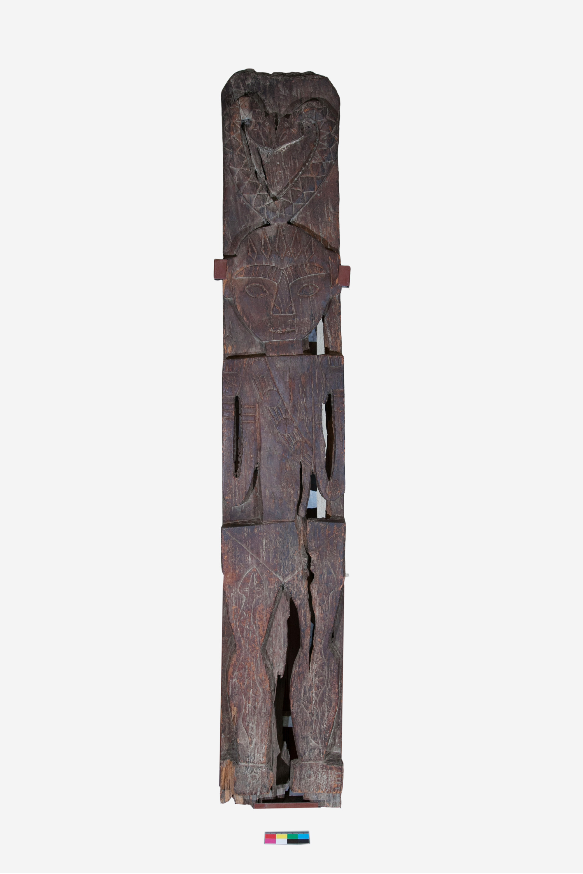 登錄理由:具有歷史意義、表現傳統,以及泰武鄉族群特色。雕刻圖案中的背帶屬日本時代的鐵線,手呈U字型、腳直立,綜合好幾種刻法,柱子上面會有承重的刻法,下面沒有,所以它是一段木頭拿來做,不是完整的原件,年代約有30年(不可能是民國元年,可能是民國60年左右),屬於泰武鄉嘉興。