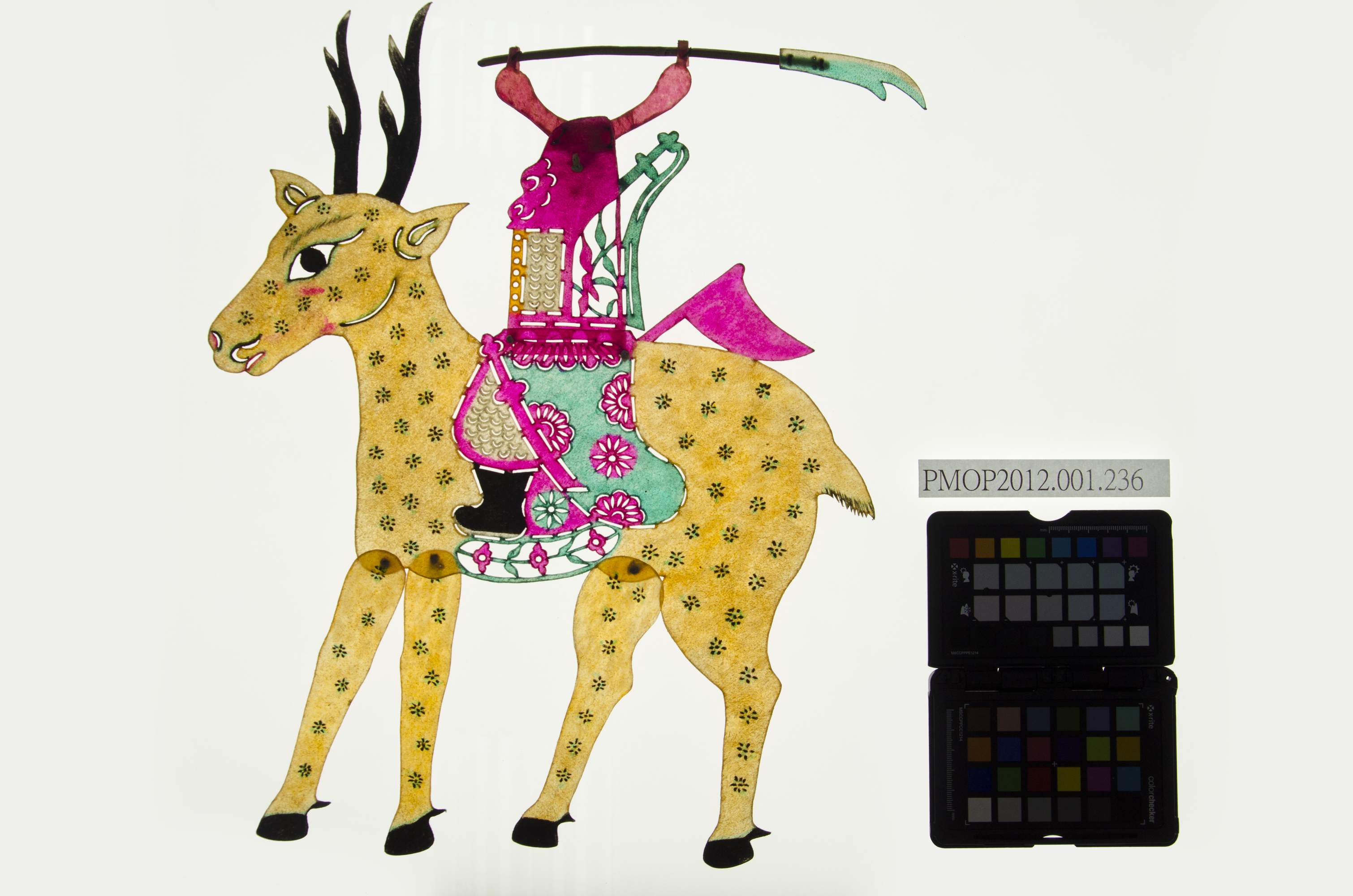 角色說明: 騎梅花鹿之武將。 技法說明: 雙手持關刀,背有飛劍,腰配寶刀。鹿背上有令旗,單桿操作。
