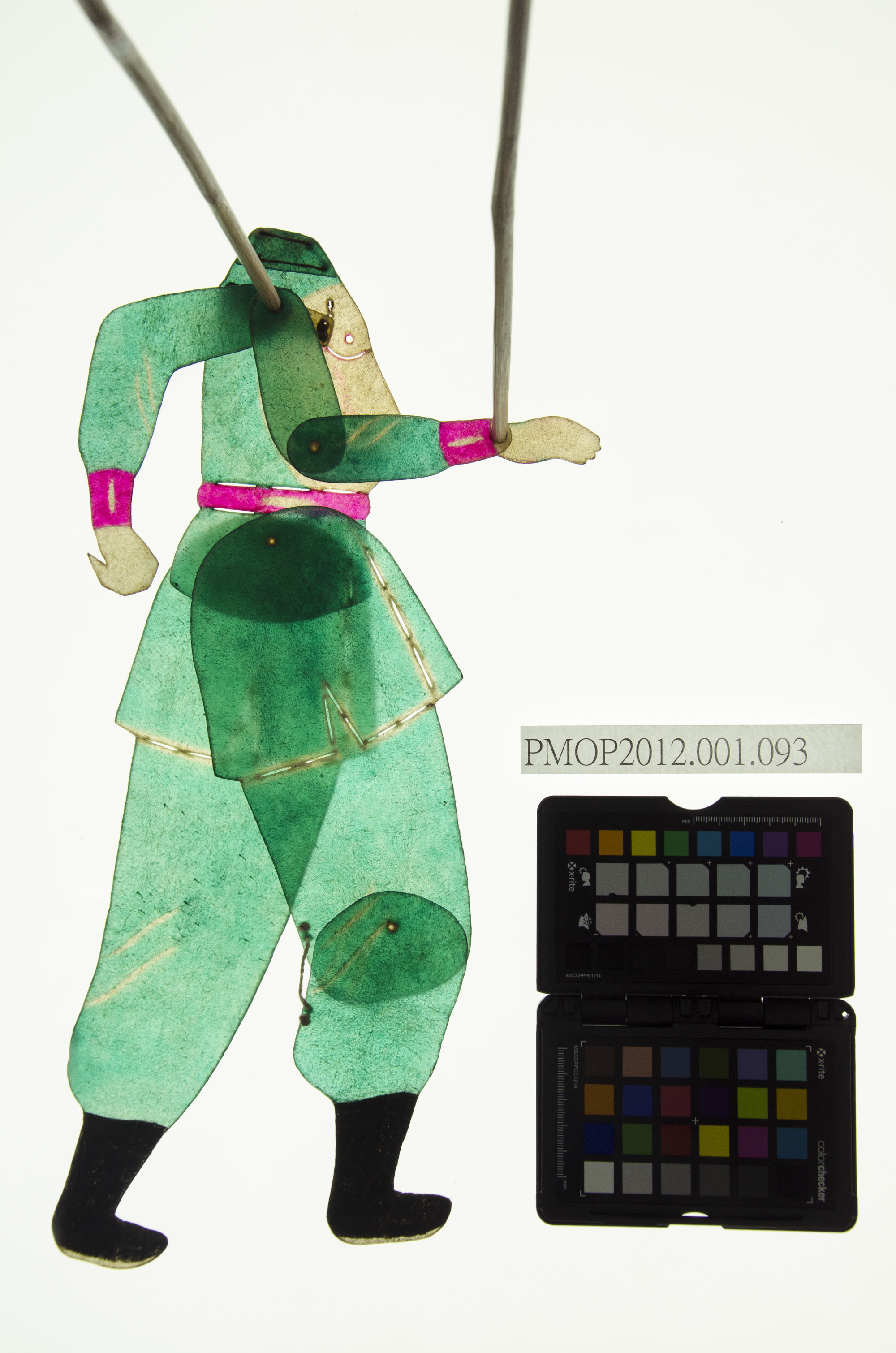 角色說明: 武生。 技法說明: 陰刻,素面武打衣,袒胸露肚。雙手雙腳皆可擺動,但無法轉身。