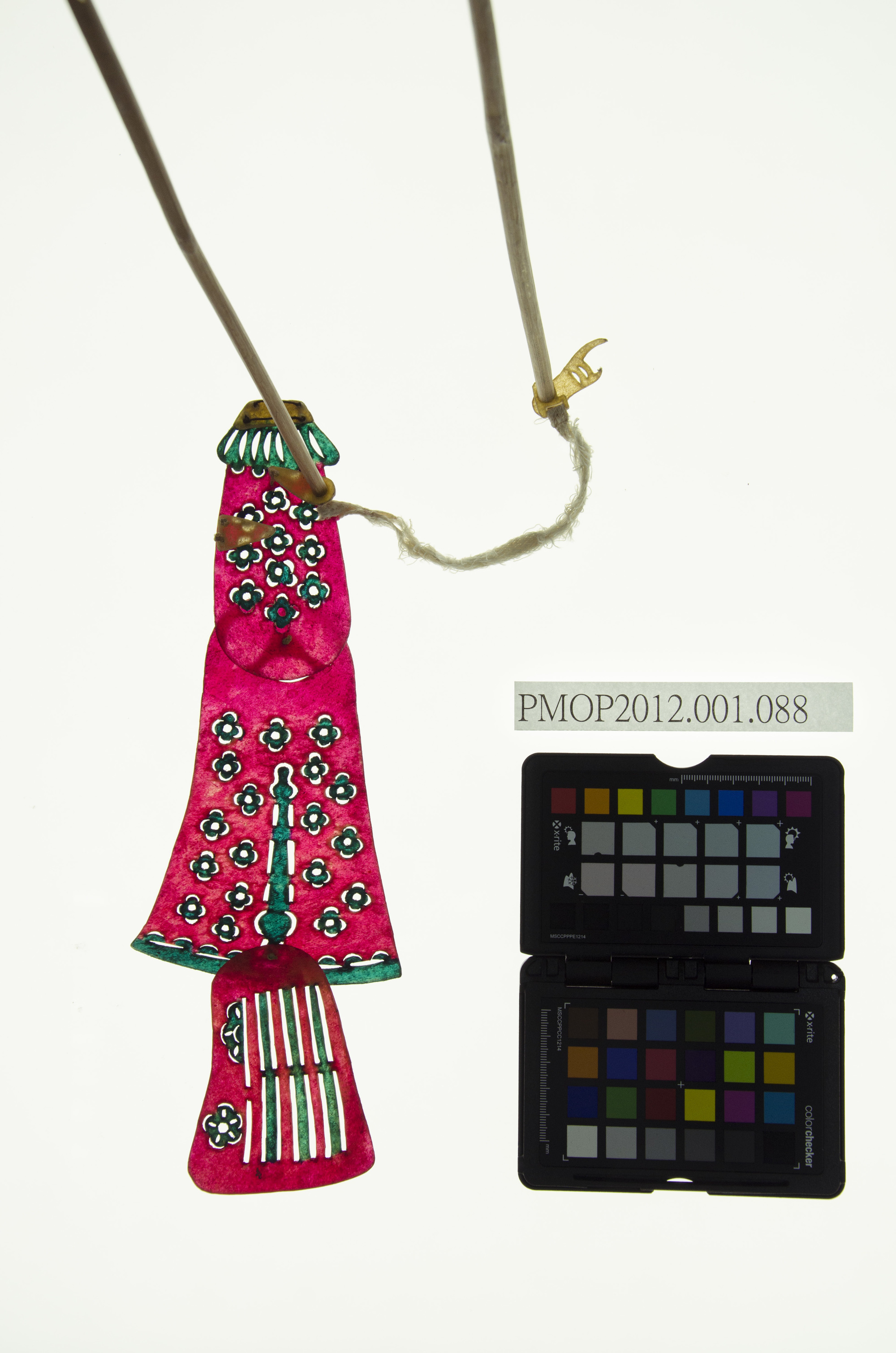 角色說明: 女旦。 技法說明: 傳統造型,衣著刻有幾何排列梅花紋,以緞帶為袖,方便轉身。