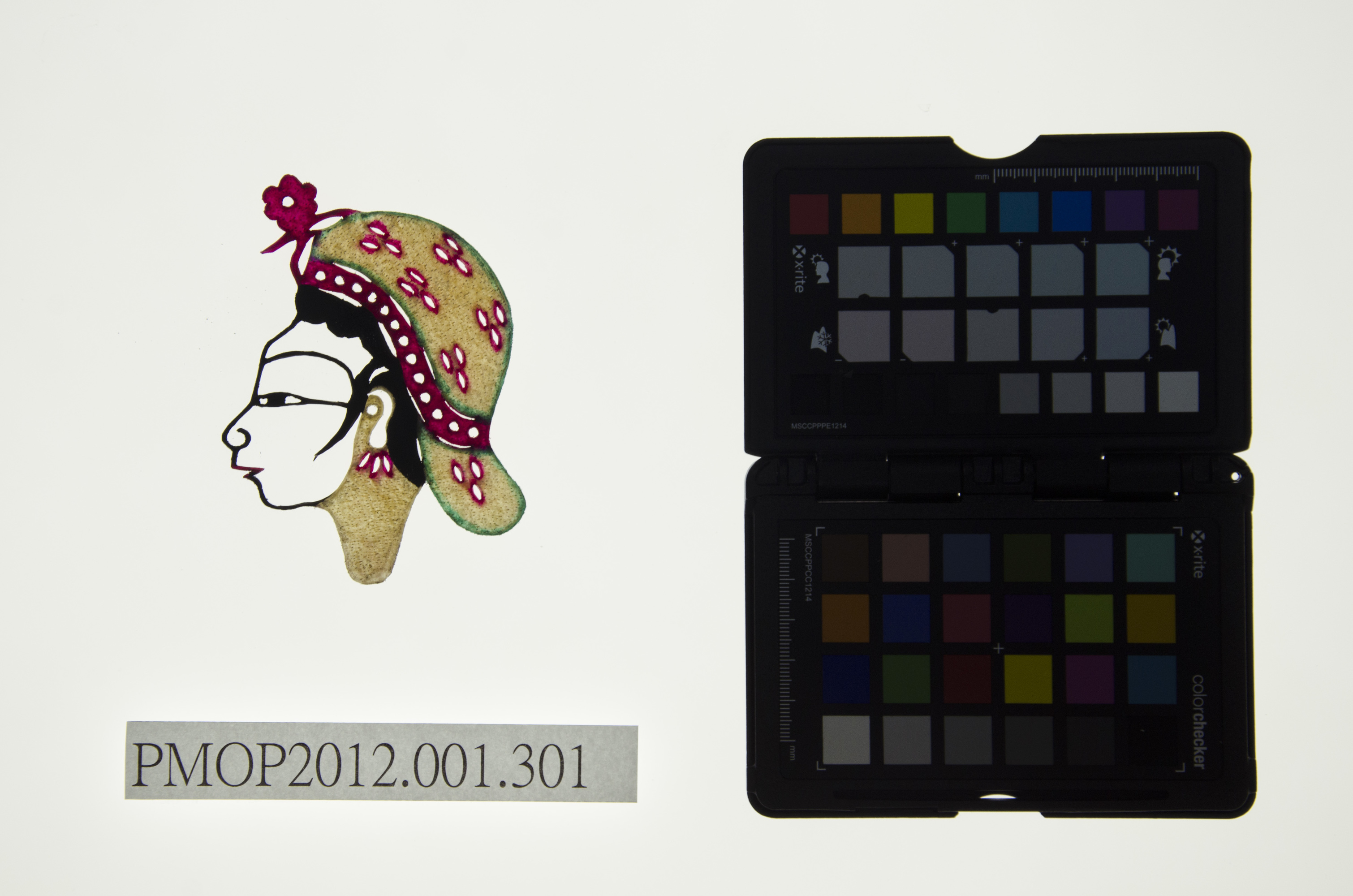 角色說明: 武旦 技法說明: 側面五分相陽刻,頭繫圓巾,可作為女將造型。 詮釋者-東華皮影劇團 張榑國 藝師