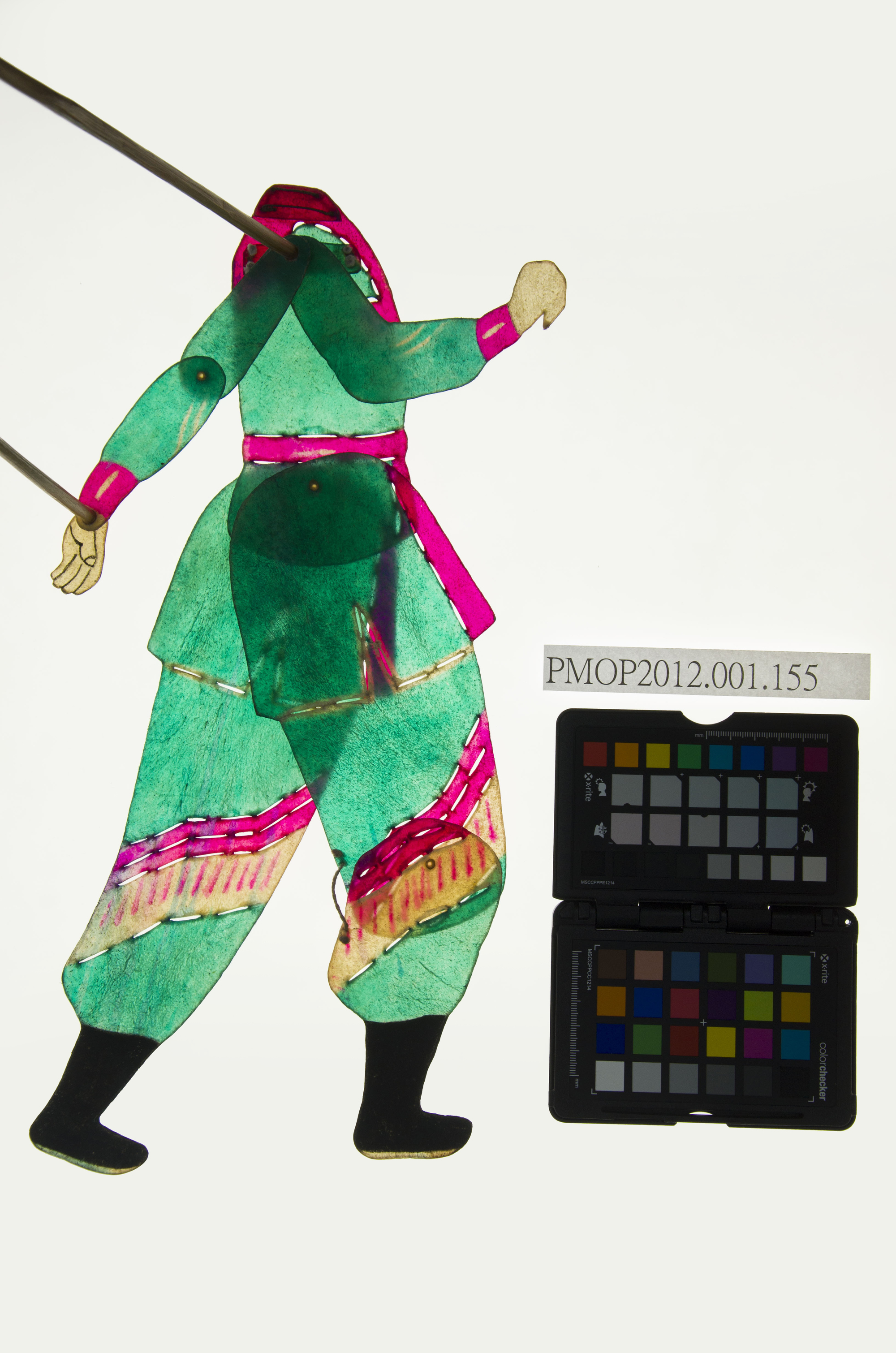 角色說明: 武身。 技法說明: 陰刻,武打素面套裝,膝蓋處有緞面流蘇造型。雙手雙腳皆可擺動,但固定位相,無法轉身。