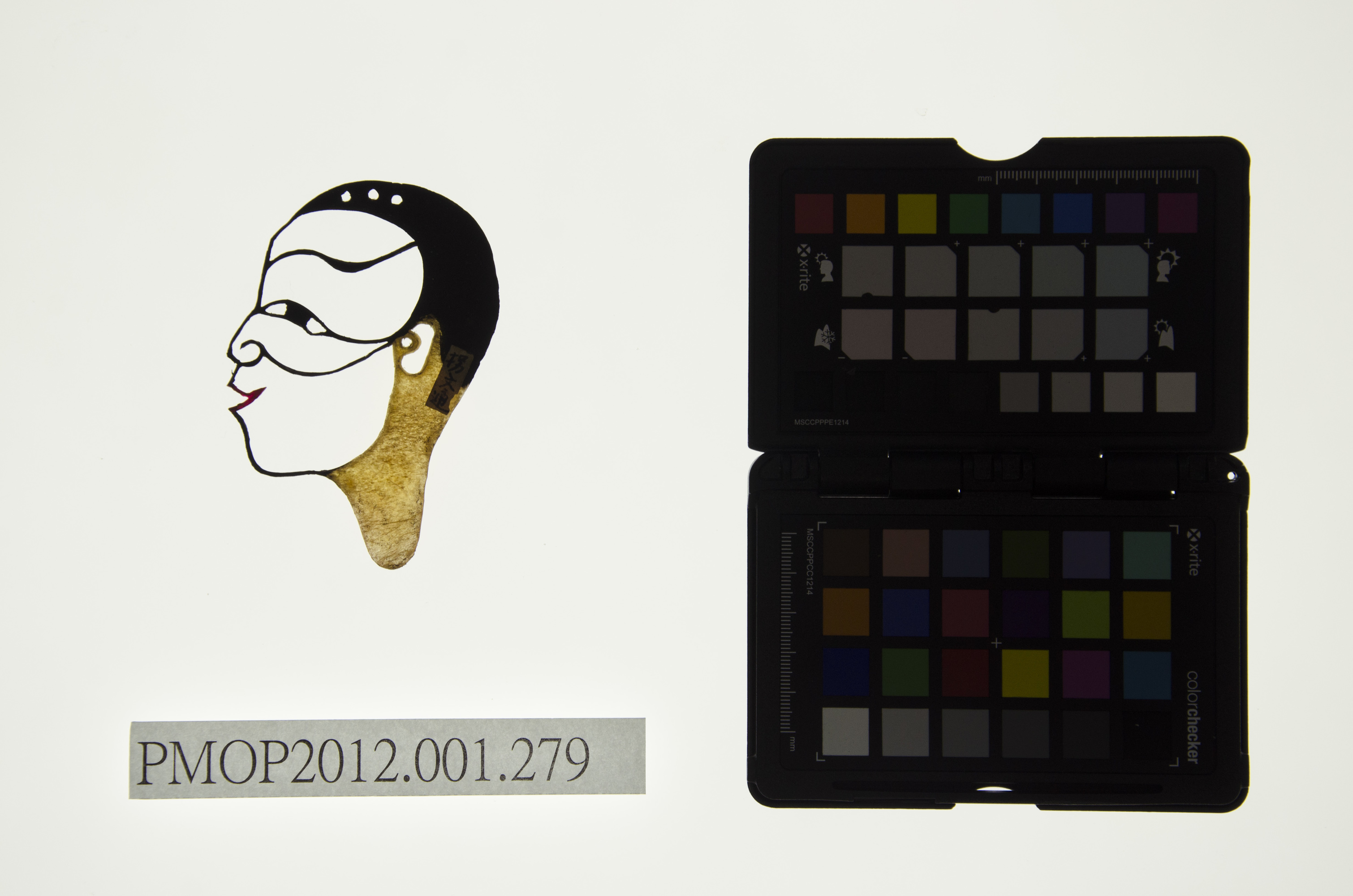 角色說明: 和尚 技法說明: 頭頂刻有戒疤。側面五分相陽刻。 詮釋者-東華皮影劇團 張榑國 藝師
