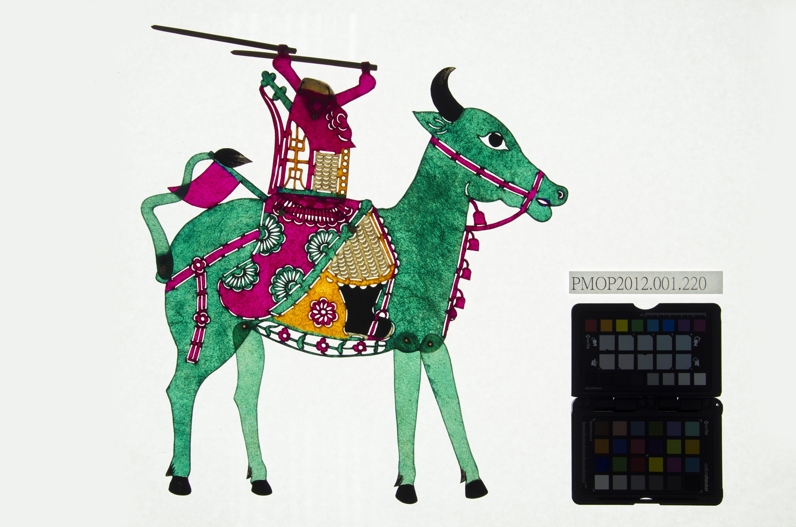 角色說明: 騎青牛武將 技法說明: 武身,身穿魚鱗紋與菊花紋冑甲,雙手持寶劍。整件皆為五分相造型。