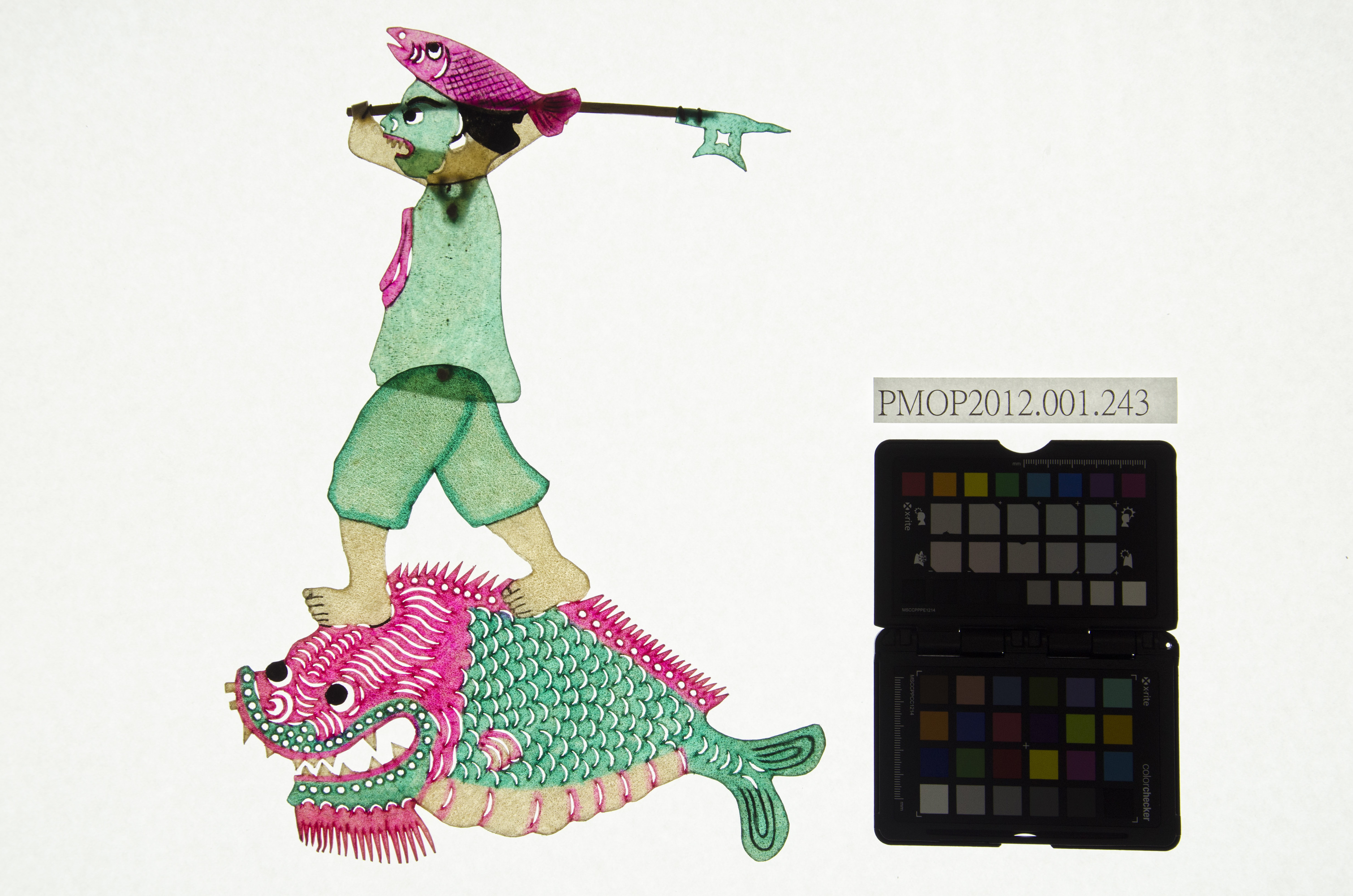 角色說明: 魚精水卒兵。 技法說明: 魚精造型,身著素衣。雙腳踏魚,下半身與魚坐騎固定,雙手拿戟。單桿操作。