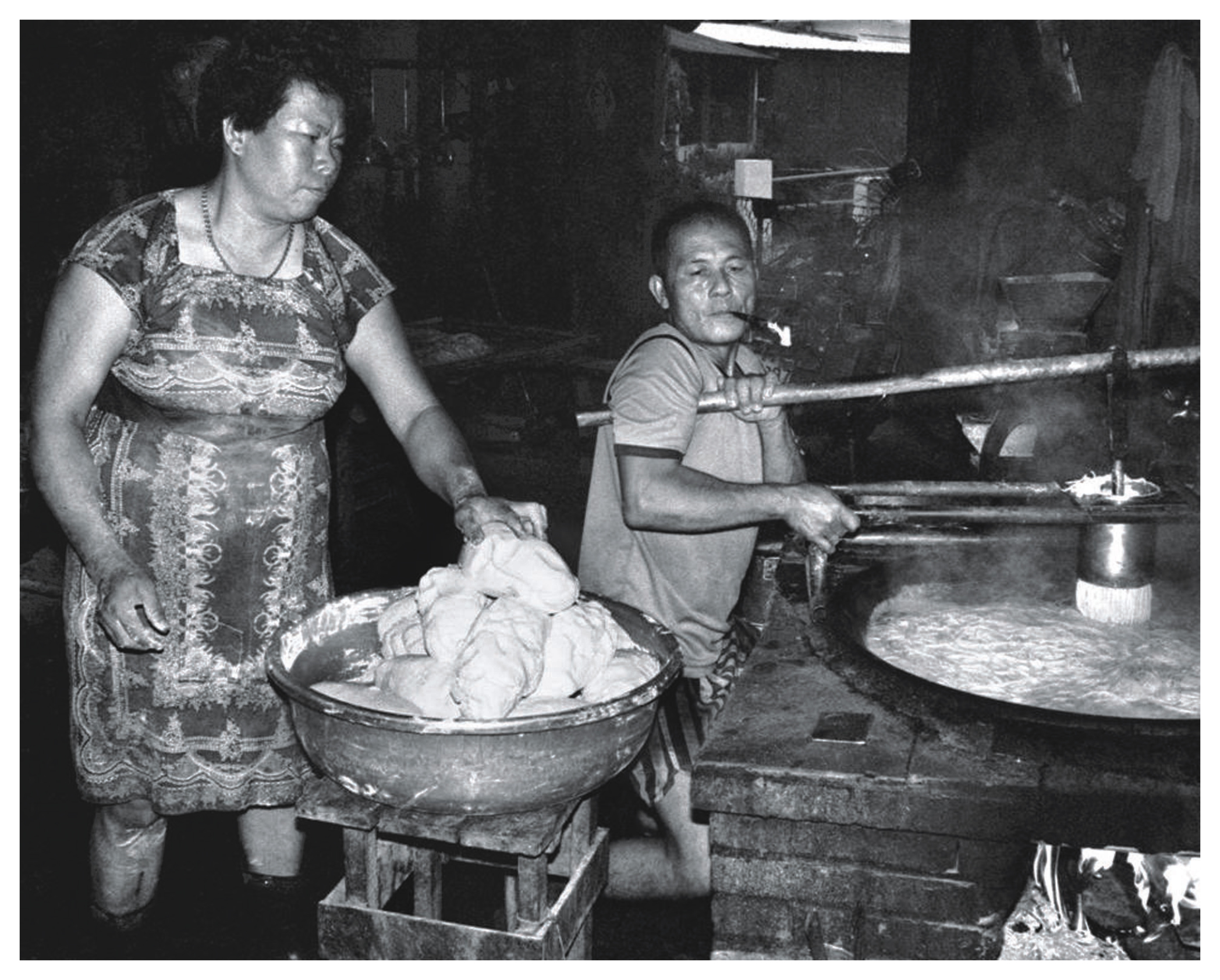 米苔目是傳統的麵食之一,在此相片中,可以見到米苔目的製作流程,使用的在來米、器具、原料、技術都是非常專業的。看看那飽滿的麵團,真是令人垂涎三尺!
