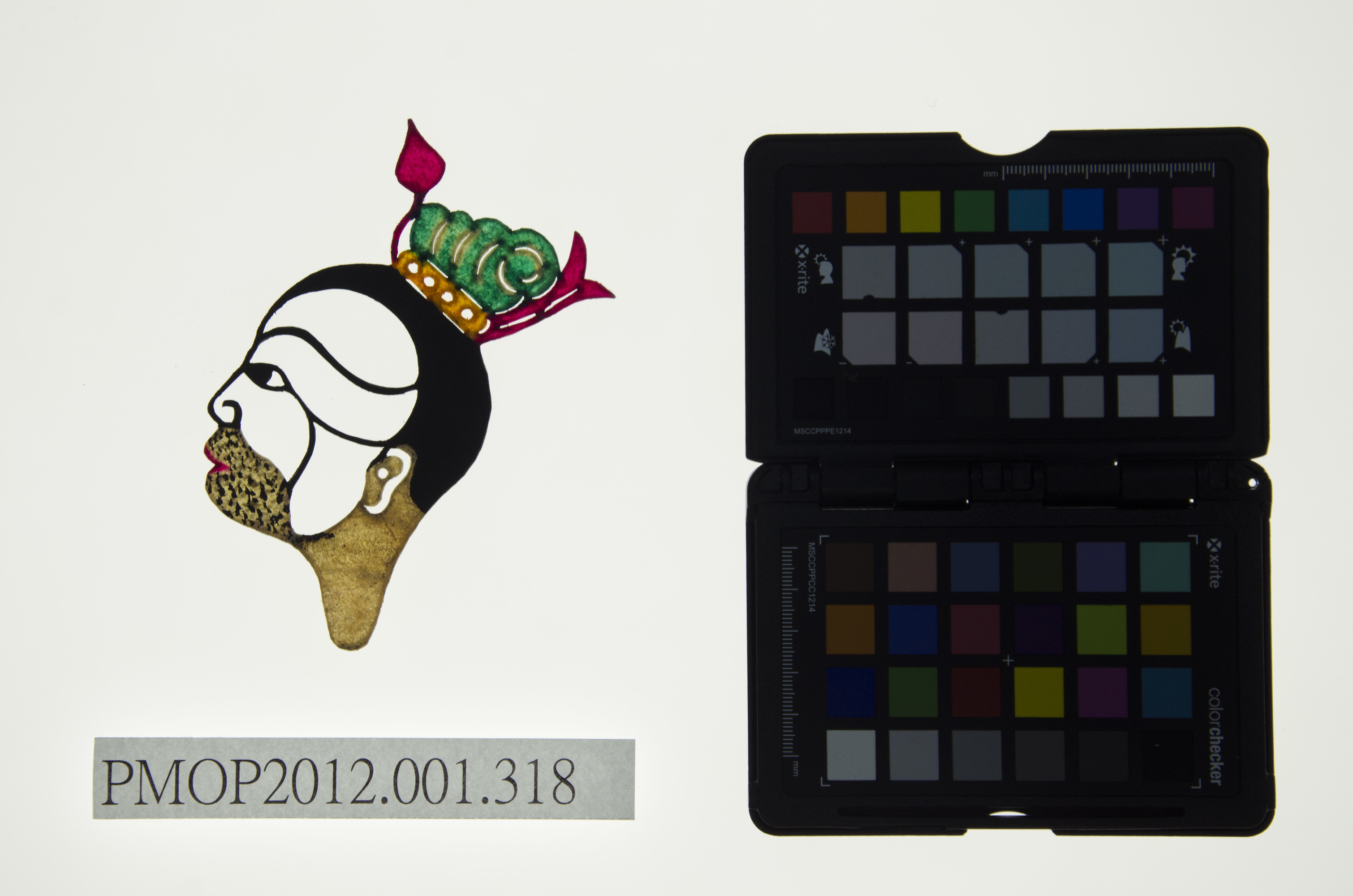 角色說明: 武僧 技法說明: 側面五分相陽刻,面有鬍渣,頭戴太子盔,為相爺之子。 詮釋者-東華皮影劇團 張榑國 藝師