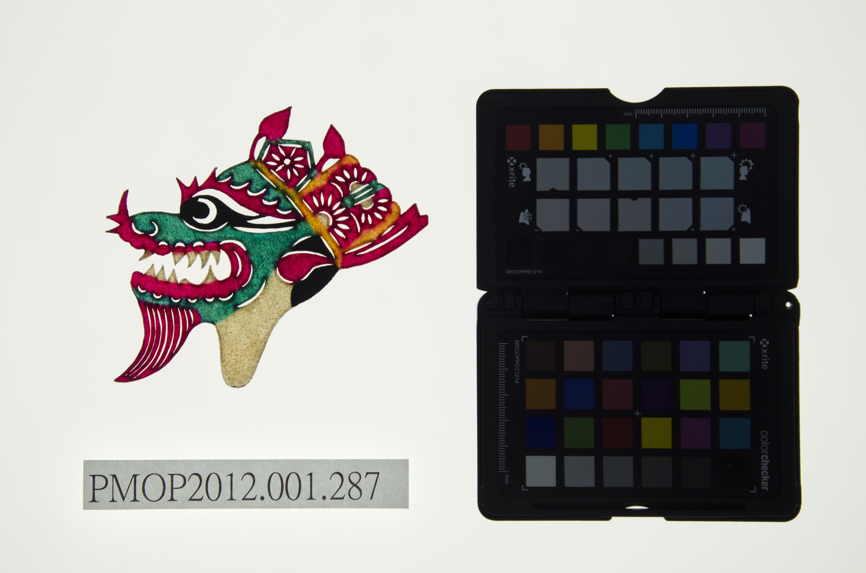 角色說明: 封神榜中東海龍王敖光。性格勇猛。 技法說明: 側面五分相陰刻,耳鬢有龍鱗。 詮釋者-東華皮影劇團 張榑國 藝師
