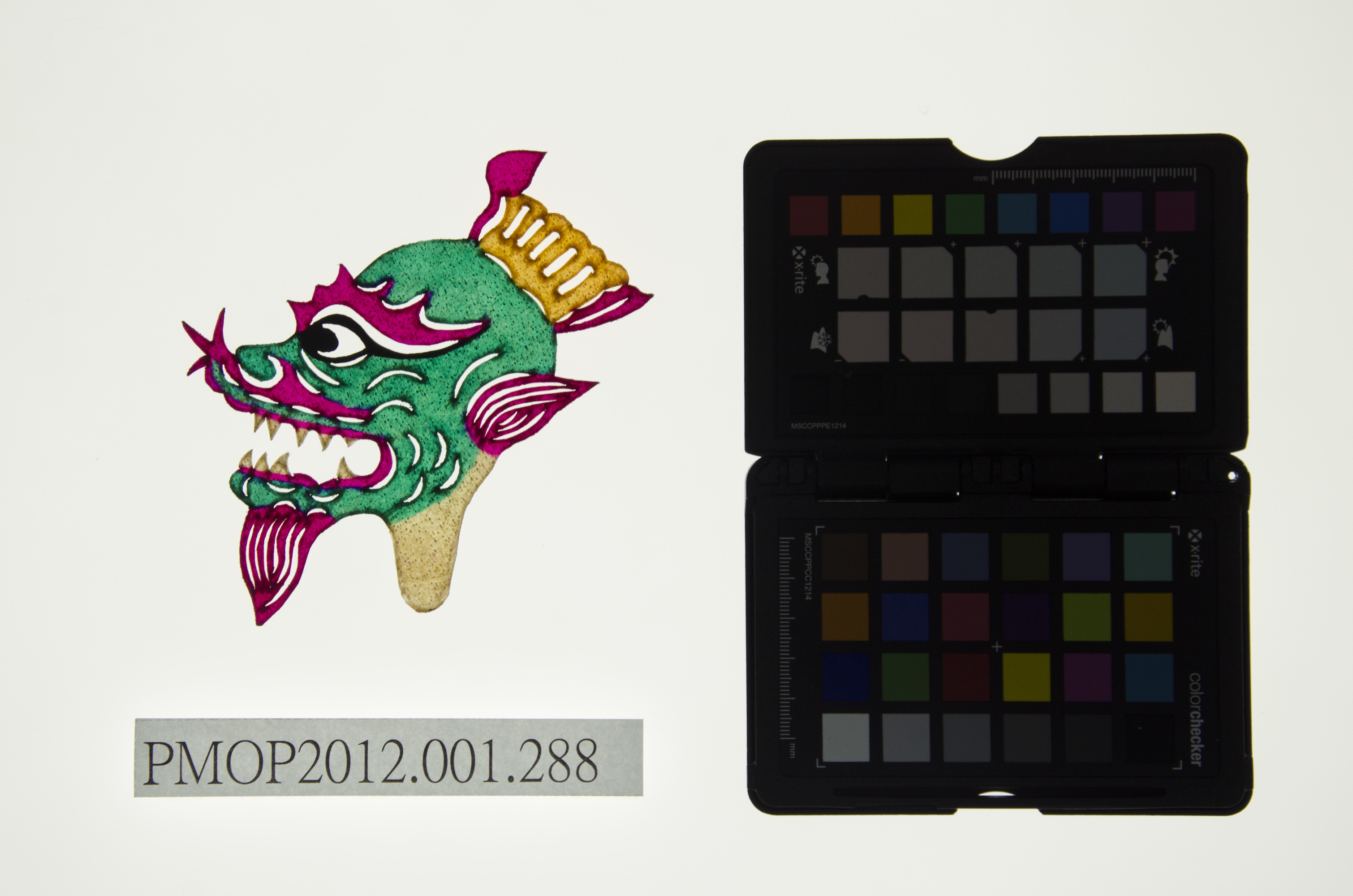 角色說明: 封神榜中北海龍王敖吉 技法說明: 側面五分相陰刻,耳鬢有龍鱗。 詮釋者-東華皮影劇團 張榑國 藝師