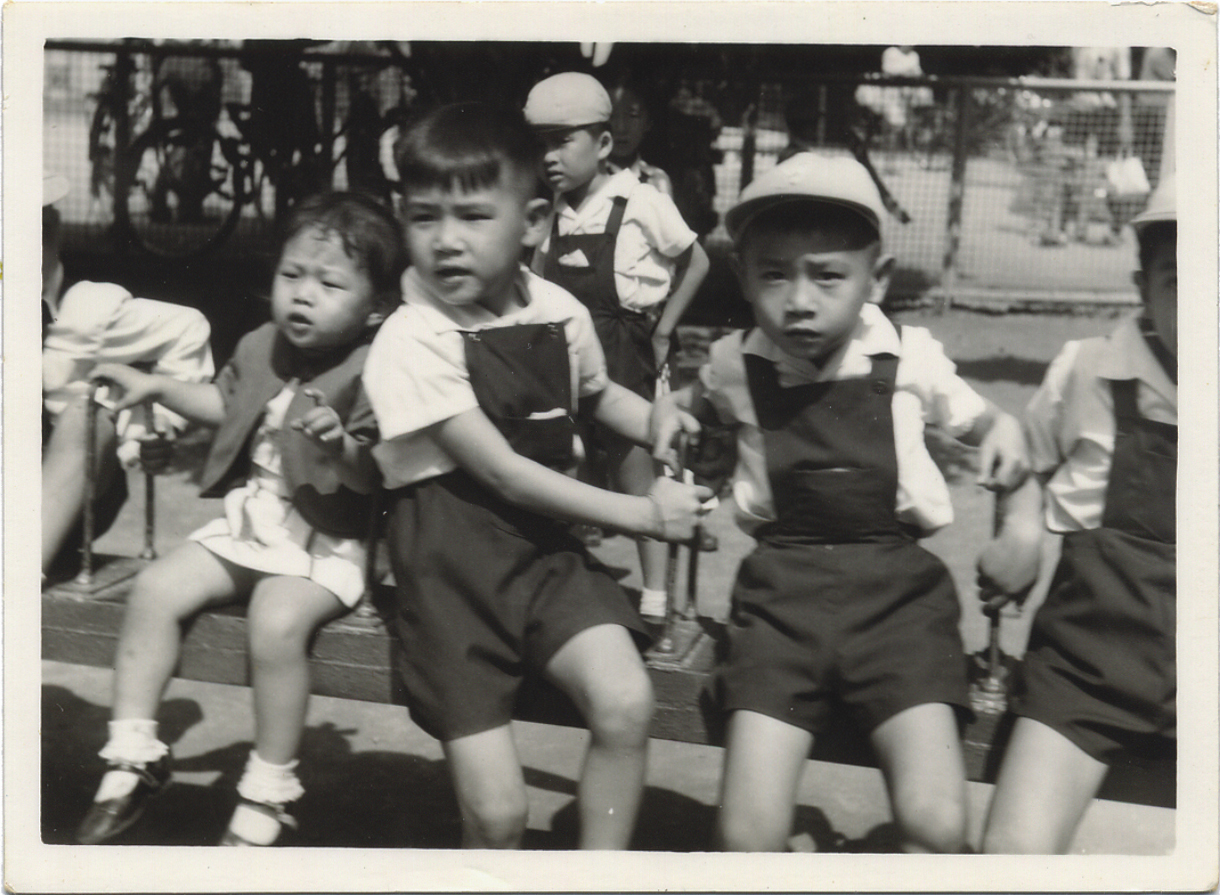 沈正林提供一張自己讀屏師附設幼稚園和同學玩蹺蹺板的相片,當時身穿連身褲的制服,常被誇讚好可愛,也被其他幼稚園小朋友以羨慕的眼光看待。