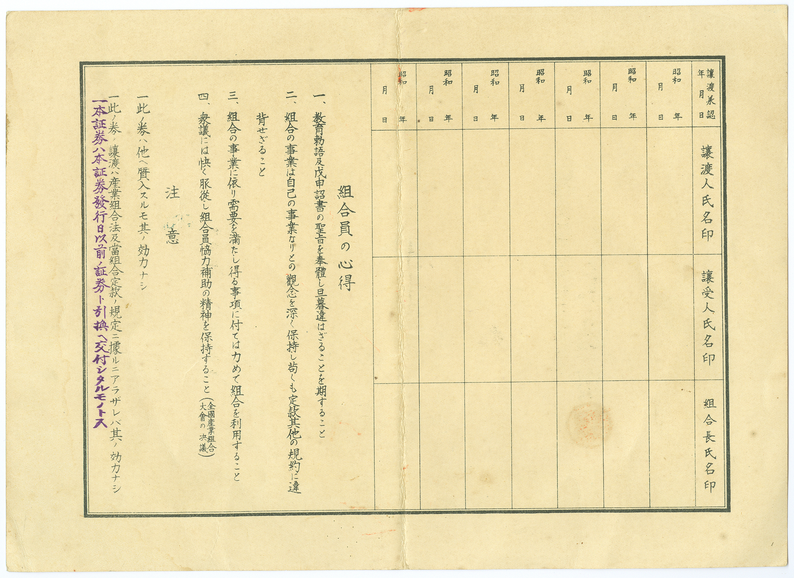 佳冬信用組合出資證券(正面)