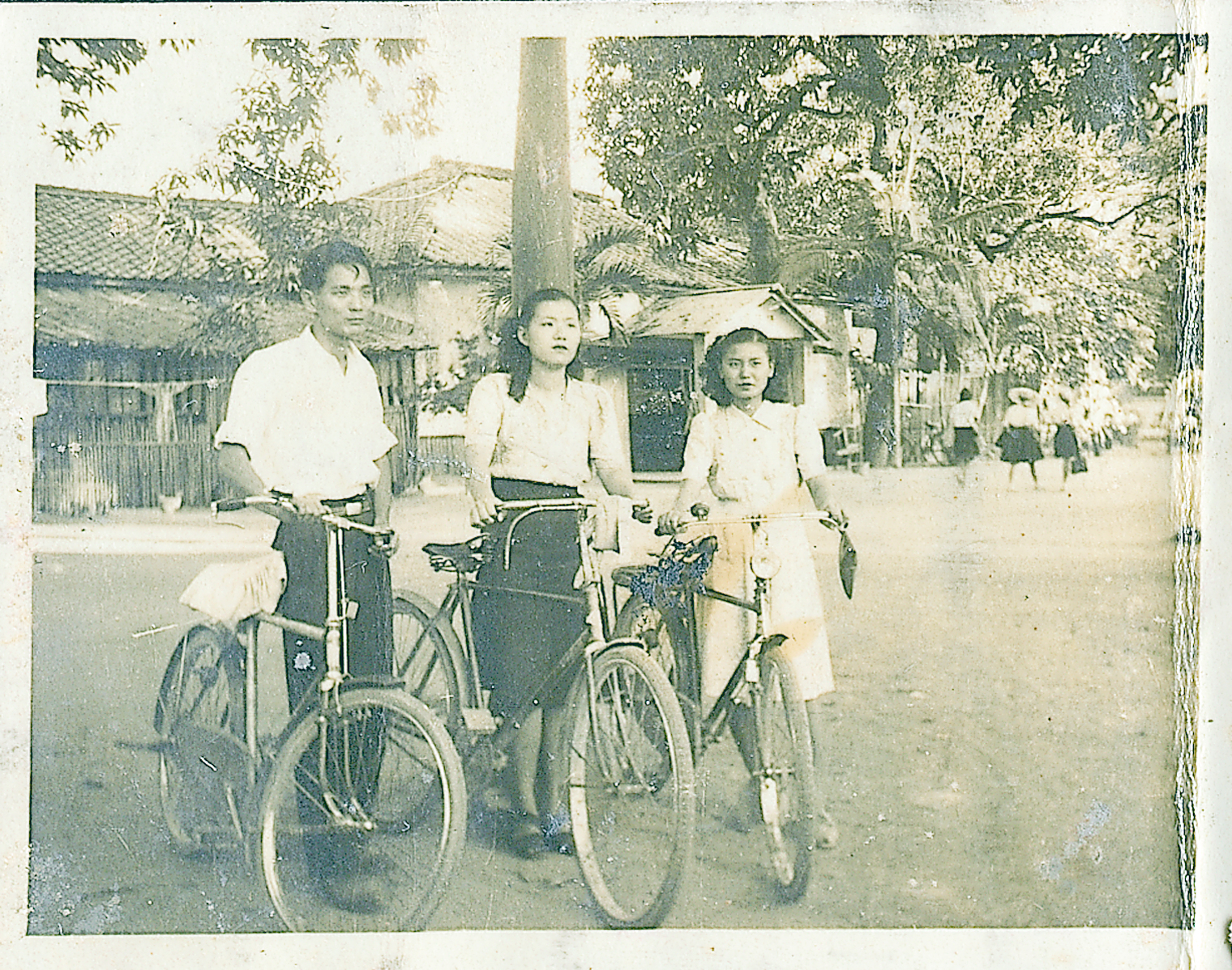 照片提供者張敏子的母親鍾菊英年輕時與親戚劉玉堂兄妹騎腳踏車遊屏東公園,相片中顯現當時的社會環境及氛圍。