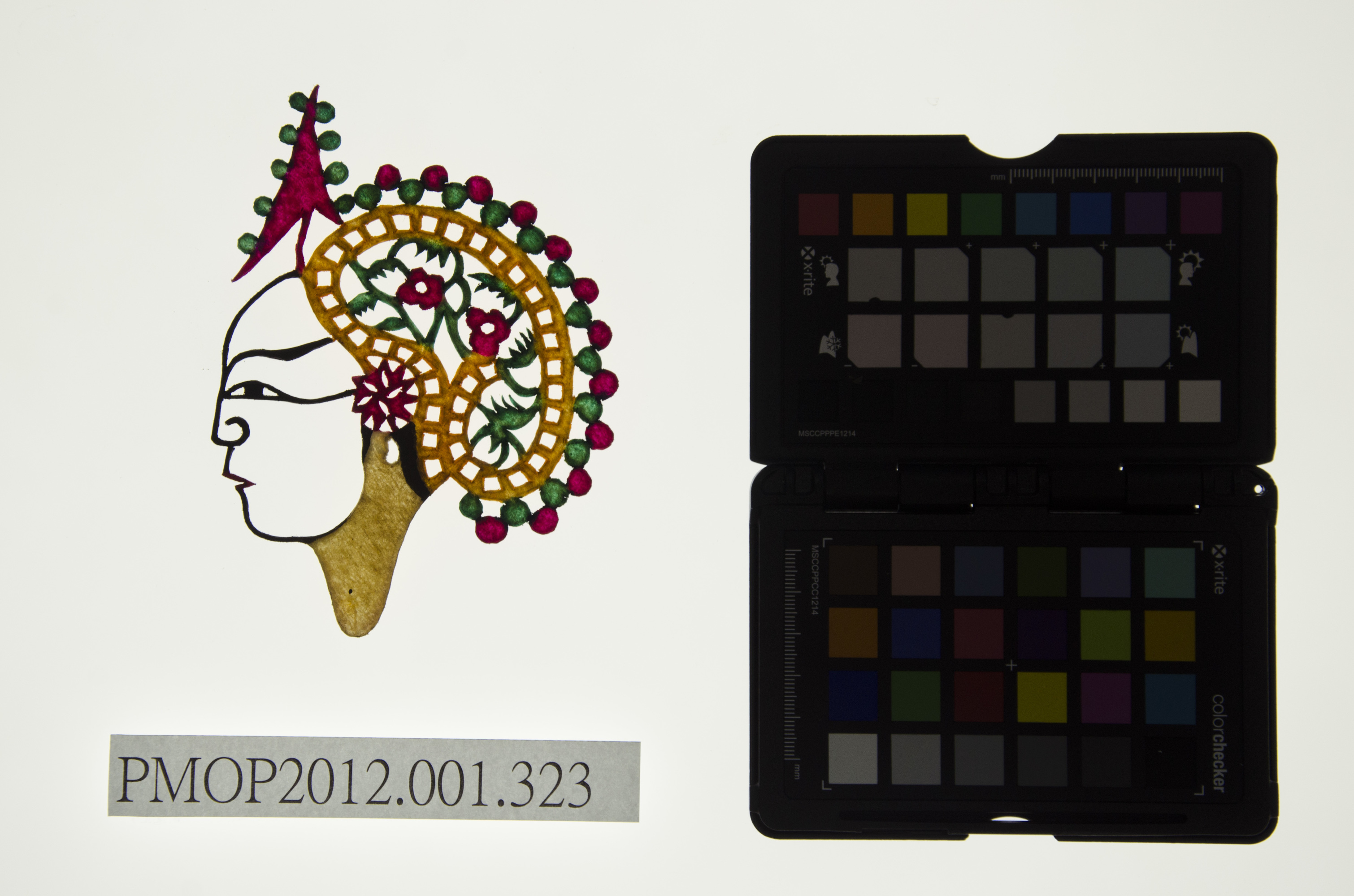角色說明: 武生。 技法說明: 側面五分相陽刻,頭戴繡花圓盤帽。 詮釋者-東華皮影劇團 張榑國 藝師